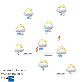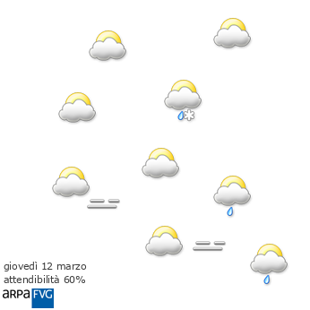 Cielo poco nuvoloso per il passaggio di velature. Presenza di inversione termiche, marcate nelle ore notturne e al mattino specie a fondovalle e in pianura. Sulla bassa pianura possibili foschie o nebbie notturne. Sulle zone orientali e sul Carso soffierà Borino o Bora moderata, specie al mattino e poi di nuovo in serata.